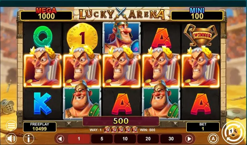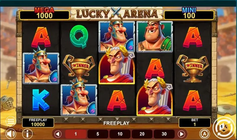 Lucky Arena Hold And Win is a 5 Reel / 243 Line slot game, released by 1Spin4Win.